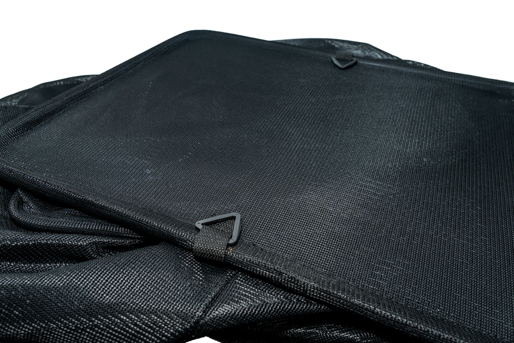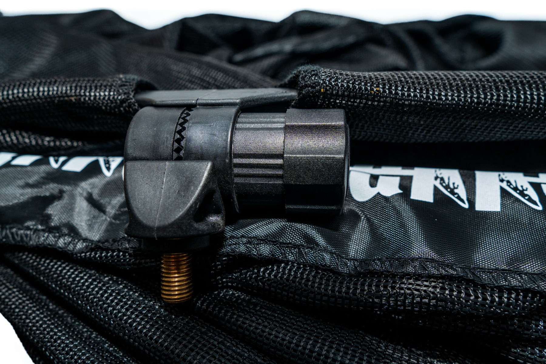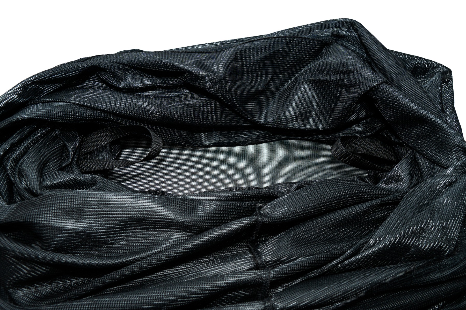 Издръжливата мрежа с тъмен цвят е изработена от полипропилен, който не наранява кожата на рибите (не се закача за перките на рибите), бързо изсъхва и не задържа неприятни миризми. Въпреки че мрежата е от текстилен материал, тя позволява постоянен поток от кислородна вода, толкова необходима за рибите. С правоъгълна форма, ювеличникът е много стабилен, когато е разпънат във водата, не се преобръща и не се стяга случайно.