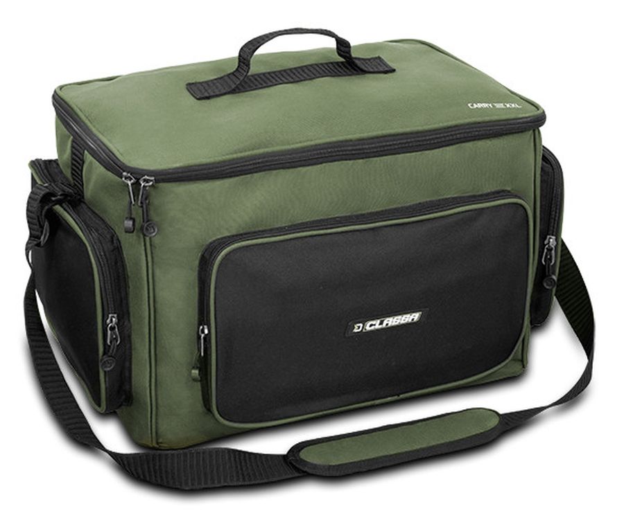 Чантата Delphin Classa CarryALL е идеален спътник за риболовни излети. Тази просторна и функционална чанта е специално проектирана за организиране и транспортиране на оборудване, облекло и аксесоари, необходими на мястото за риболов. Изработена е от издръжливи и здрави материали, които осигуряват дълъг експлоатационен срок, както и защита на съдържанието от неблагоприятни условия. Чантата е подсилена в ъглите, като запазва формата си дори когато е празна. Освен това, долната част е оборудвана с гумен материал, който предотвратява проникването на влага от мократа повърхност, като по този начин защитава дрехите и оборудването от намокряне.
