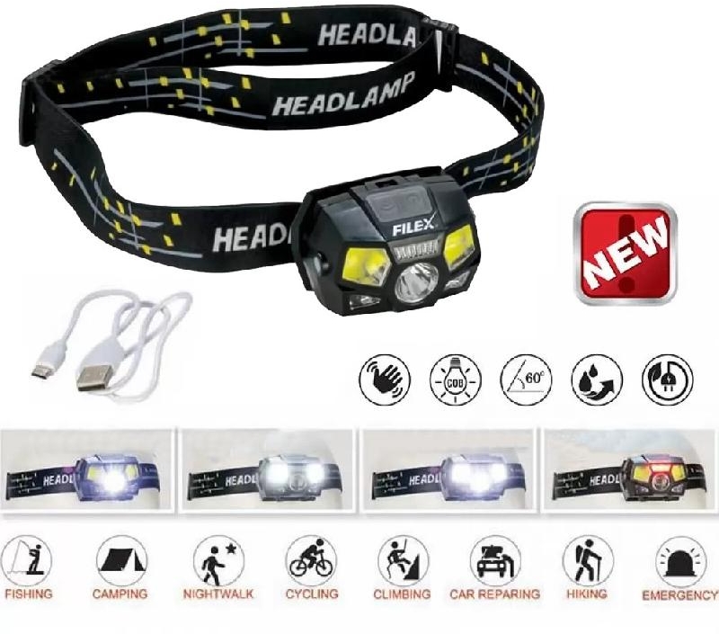 Фенер за глава с бърза и лесна употреба със сензор за движение. Специален дизайн с двоен превключвател за смяна на режимите на осветление. Фенерът разполага с USB зареждане, което осигурява на батерията с голям капацитет дълготрайна мощност за престой на открито. Фенерът е предназначен за риболов.