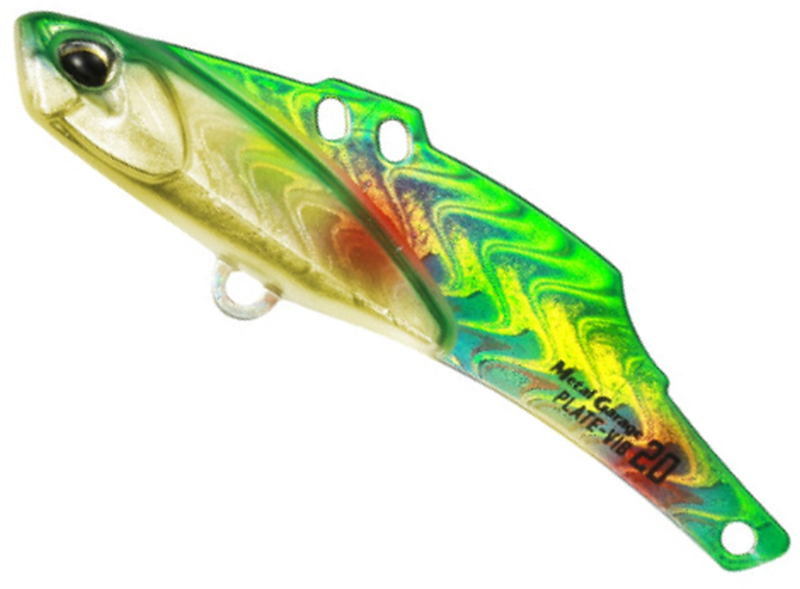 Plate Vib има компактен корпус с тънка пластина, което го прави много аеродинамичен и позволява дълги хвърляния, дори при ветровити условия, подобрявайки далечината на замятане на примамки с типични вибрации. Пластината има два ока за закачане – предното е за лесно и бързо прибиране с плътно действие, а задното – за по-висока привлекателност при бавно прибиране и по-силно действие при повдигане и падане. Plate Vib е създаден да произвежда силно привличащо действие само с директно прибиране.