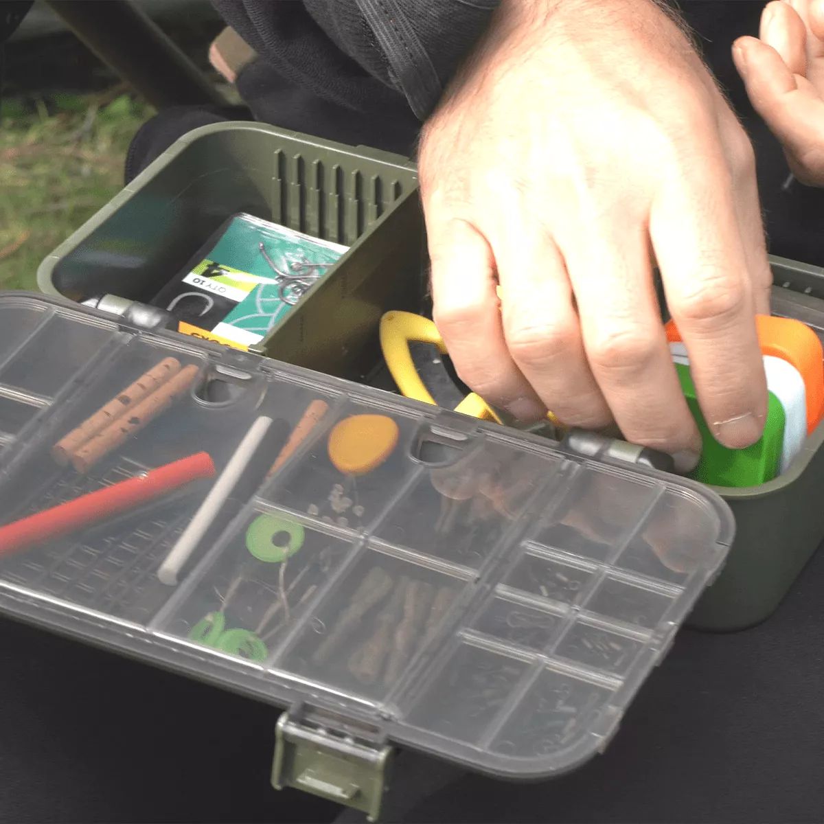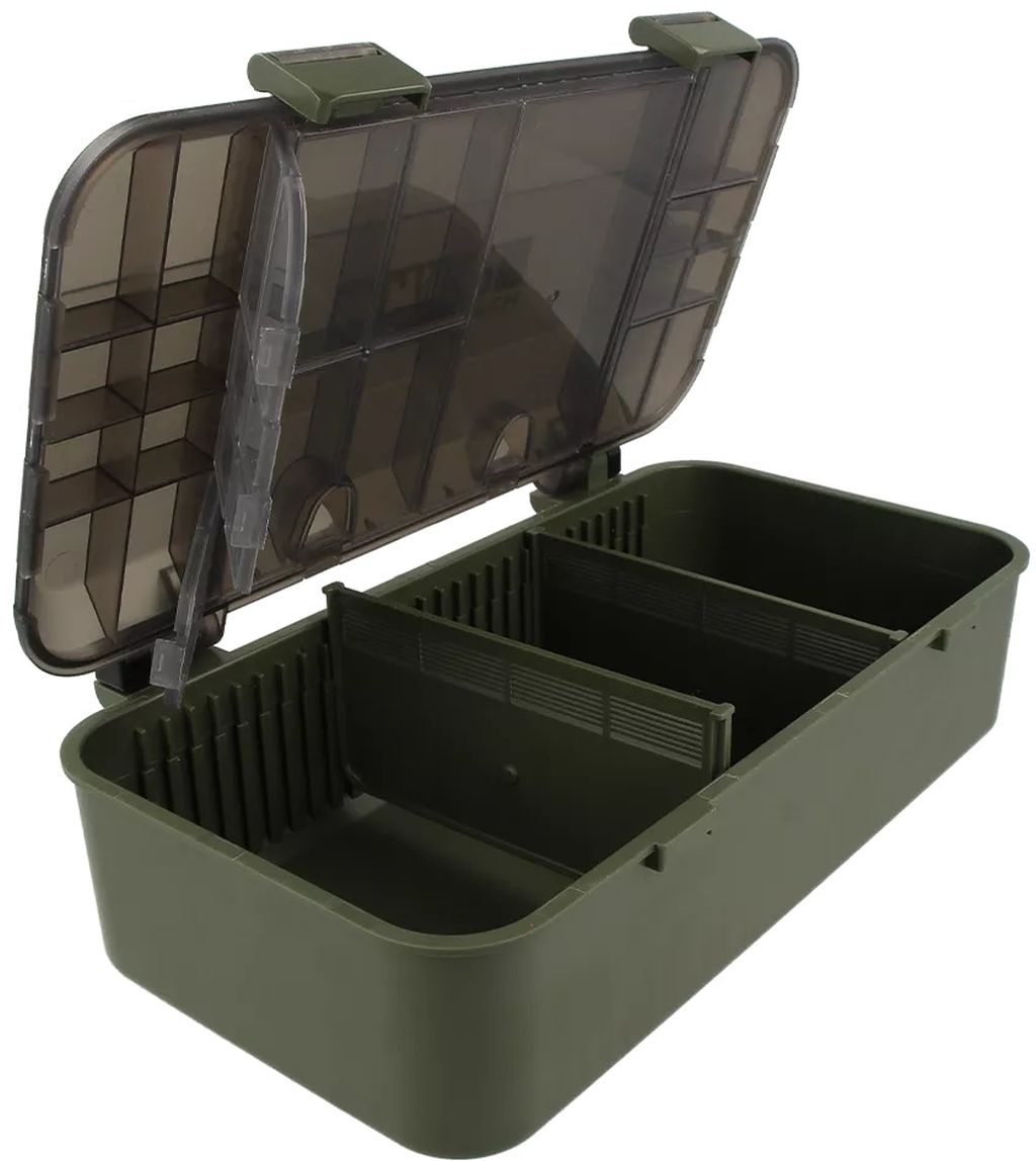 Golden Catch G.Carp Deep Tackle Box е практична кутия, предназначена за организиране на аксесоари и монтажи при риболов на шаран и фийдър. Изработена от ABS пластмаса и полипропилен, устойчива на честа употреба и излагане в трудни условия. Моделът включва 21 отделения под прозрачен капак, осигуряващ видимост и бърз достъп до аксесоарите. Основното отделение е оборудвано с две подвижни прегради, които позволяват конфигуриране на вътрешното пространство според нуждите, подходящо за съхранение на различни артикули като инструменти, материали за монтажи или малки аксесоари.