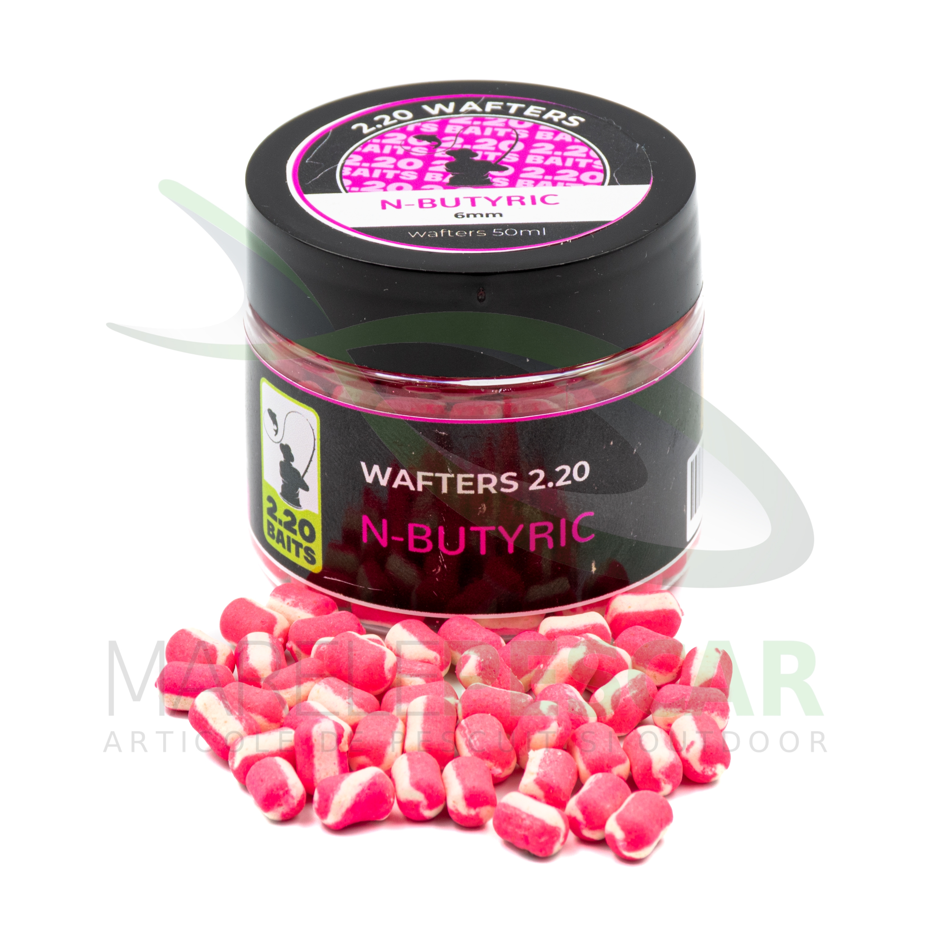 2.20Baits Wafters са поп уп примамки с критично балансирани цилиндрични (dumbell) форми и заоблени краища, което ги прави изключително лесни за монтаж на косъм, силиконова лента или кукичка за примамка. Те имат бавно време на потъване, което ги прави идеални както за фидер риболов, така и за матч риболов на частни язовири или реки.