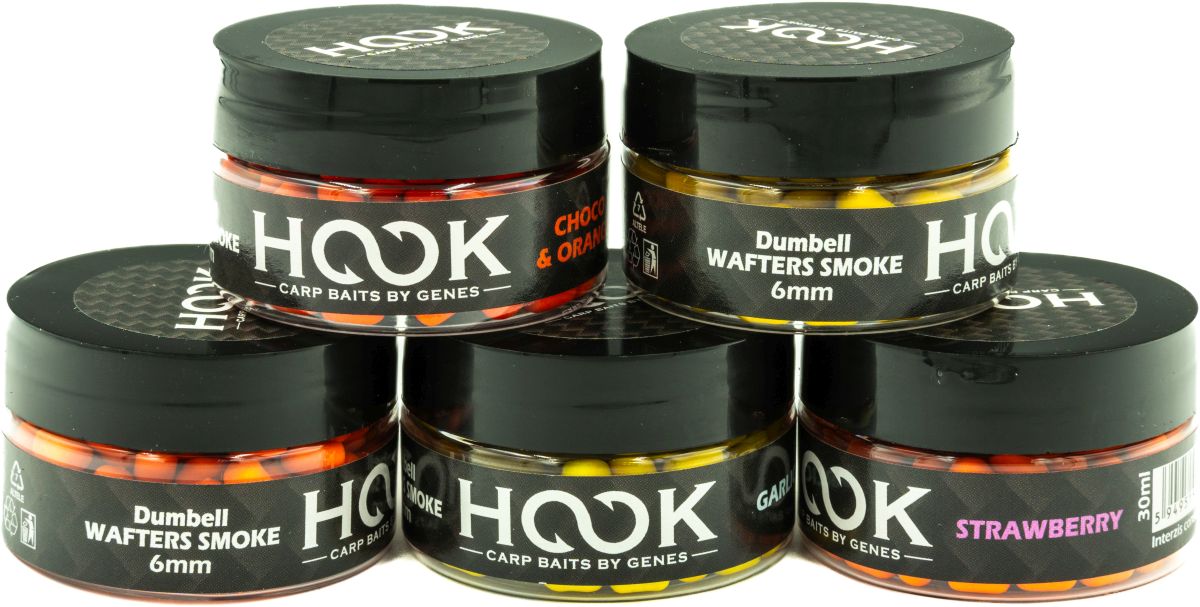 Dumbell Wafters Smoke са балансирани кукични примамки с неутрална плавателност, идеални за риболов с method фидер. Техният дълготраен аромат привлича рибите дори след няколко часа във водата. Тези примамки имитират естествените източници на храна, привличайки дори и най-предпазливите шараните. Те са инфузирани с разнообразни аромати и са налични в няколко цвята и размери, подходящи за различни видове води и хранителни навици на рибите.