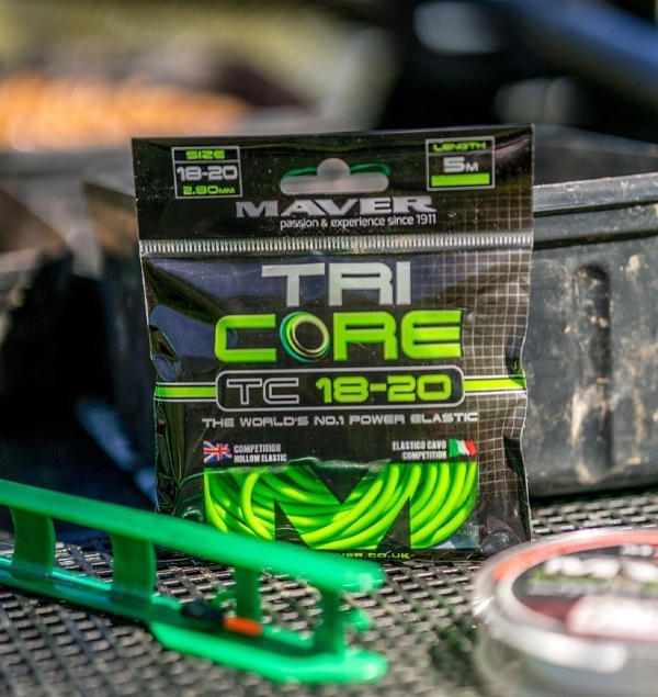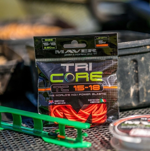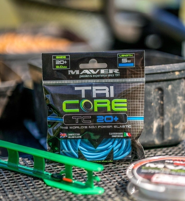 Използван от риболовците на рибезияна или фидер за омекотяване на ударите, предизвикани от повтарящите се дърпания на борещите се риби по време на борбата, еластикът Maver Tri Core Pro Match се характеризира с голяма устойчивост на опън и износване, както и с отлична видимост. Еластикът е изработен от чист латекс, тройно ядро, а от външната страна има защитен силиконов слой, който му придава повишена устойчивост на износване. Новостта при тези еластики е тройното ядро, което осигурява по-висока здравина в сравнение с обикновените еластики.