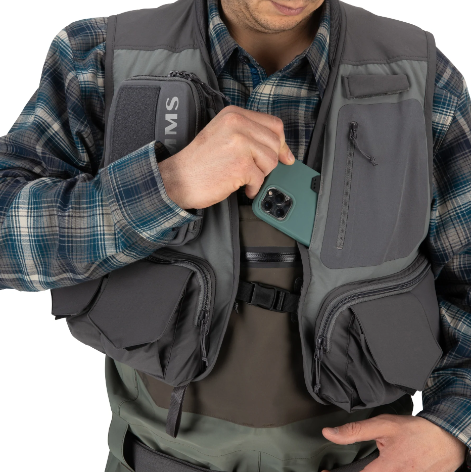 Когато сезоните се променят и прииждащите води на любимата ви река започват да кипят от гладна риба, бъдете готови да се възползвате от този момент. Веста Simms Freestone Pewter е вдъхновена от ненатрапчивата красота на реките. Опростеният дизайн включва 12 интуитивно организирани джоба. Меката плетена подплата на яка и леките, дишащи рамене добавят комфорт от зори до залез. Освен това производителят е добавил и две вградени макара за бързо прибиране с магнитна станция за докиране.