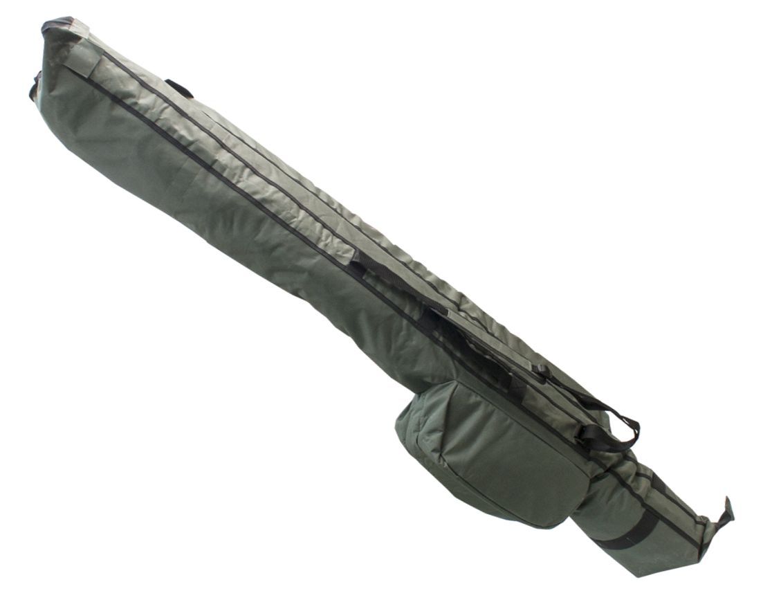 Макарите са поставени в подплатено отделение, така че са напълно защитени от механични външни влияния, както и една от друга. Въдиците могат да се фиксират вътре в калъфа с помощта на лента, като по този начин се изключва местенето и смесването на комплектите. Материалът на калъфа е плътна текстилна материя, която е не само естетична, но и много здрава. Освен за транспортиране на въдици, в големите странични джобове можем да носим чадър, кеп или други неща, които смятаме, че ще са ни нужни на брега и побираме в джоба.