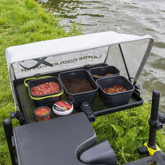 Matrix Cooler Cover е специално проектиран капак за страничен съд, който осигурява сянка за примамките в много слънчеви дни. Дизайнът позволява лесно прикрепяне към страничния съд. Материалът, от който е изработен, предотвратява проникването на силните слънчеви лъчи вътре. Matrix Storm Cover е качествен капак, идеален за риболовни сесии при слънчево време благодарение на дизайна, който позволява оптимален въздушен поток. Съвместим със страничен съд Matrix Self-Supporting Side Tray, Large.