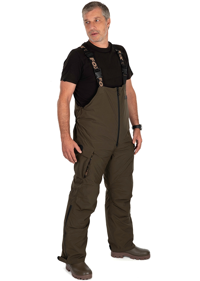Основният цип е водоустойчив и разполага с дърпач със текстилен шнур за лесно закопчаване и отваряне. Вътрешният дефлектор осигурява перфектна изолация срещу студа, а талията е частично еластична. Еластичните тиранти са напълно регулируеми за улеснено закрепване на раменете, а двата джоба, разположени в областта на бедрата, се закопчават с лента. Подсилени плисирани панели в зоната на коленете осигуряват повишена устойчивост на износване. Регулируемите каишки около глезените улесняват закрепването.
