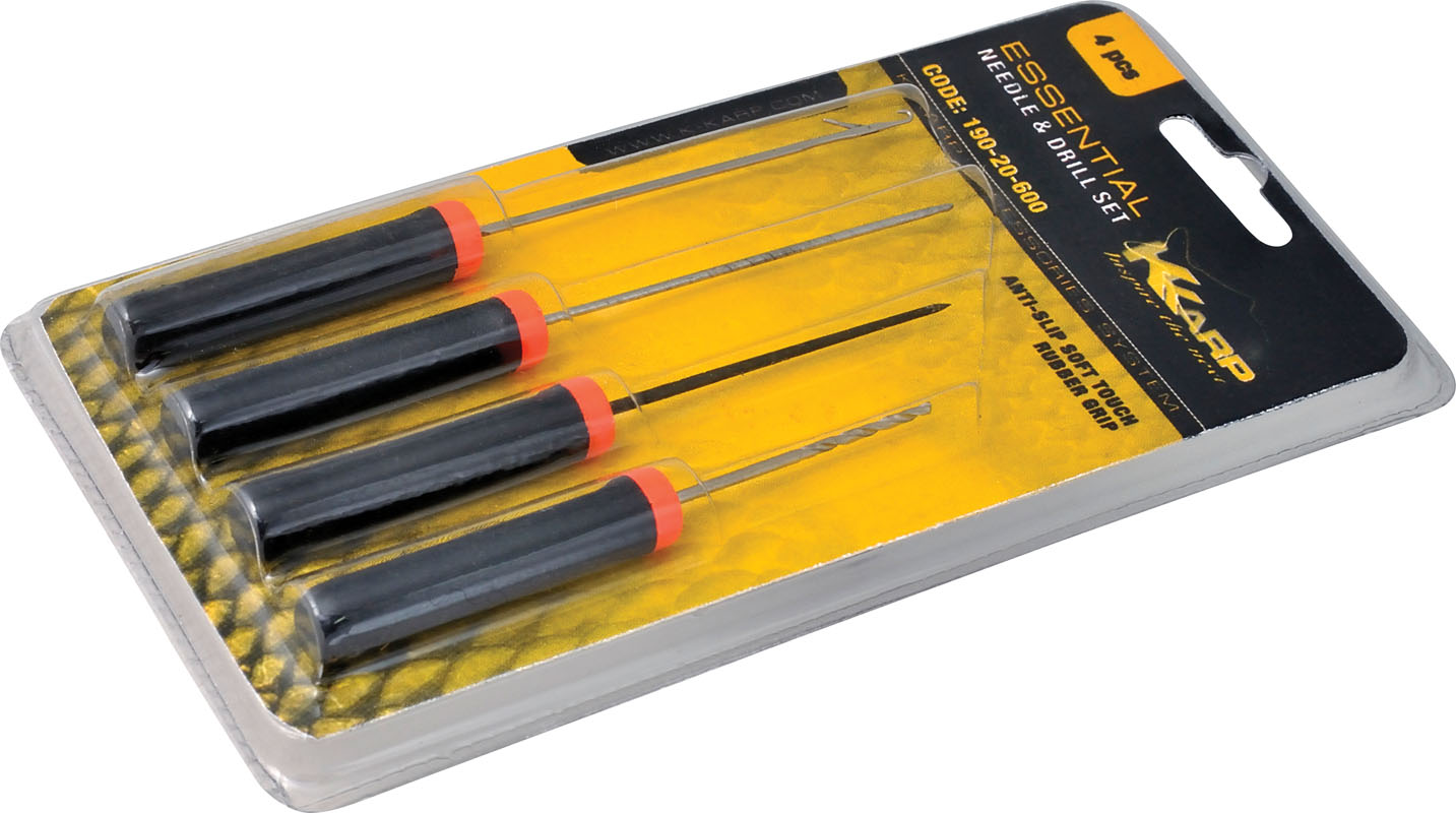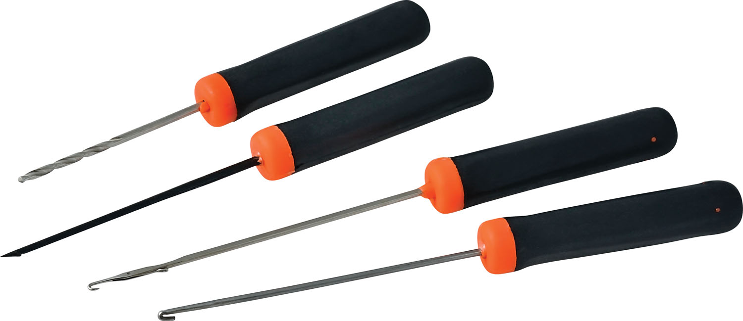 Комплект, състоящ се от 3 куки и бургия с меки нехлъзгащи се дръжки.