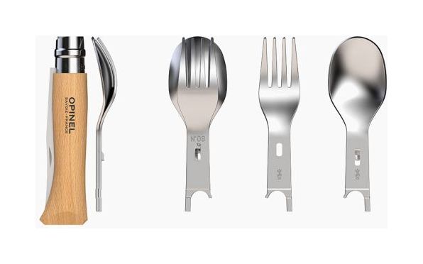 Opinel Picnic Plus е комплект от 4 части, идеален за къмпинг, открито, пътувания, риболов. Този комплект съдържа: сгъваем нож Opinel Nr.8, вилица и лъжица, които се прикрепят към дръжката на ножа, и микрофибърна кърпа Opinel. Тези джобни аксесоари осигуряват повишена безопасност при пренасяне, благодарение на системата Veribloc от Opinel, която заключва сгъването на острието както в затворено, така и в отворено положение. Всички ножове са с острие от неръждаема стомана с висока твърдост и не са препоръчителни за по-тежки задачи. Дръжката от дърво има естествен вид и е покрита с тънък слой лак. Въпреки че острието няма да ръждясва, производителят не препоръчва съхранението на ножа в влажна среда.