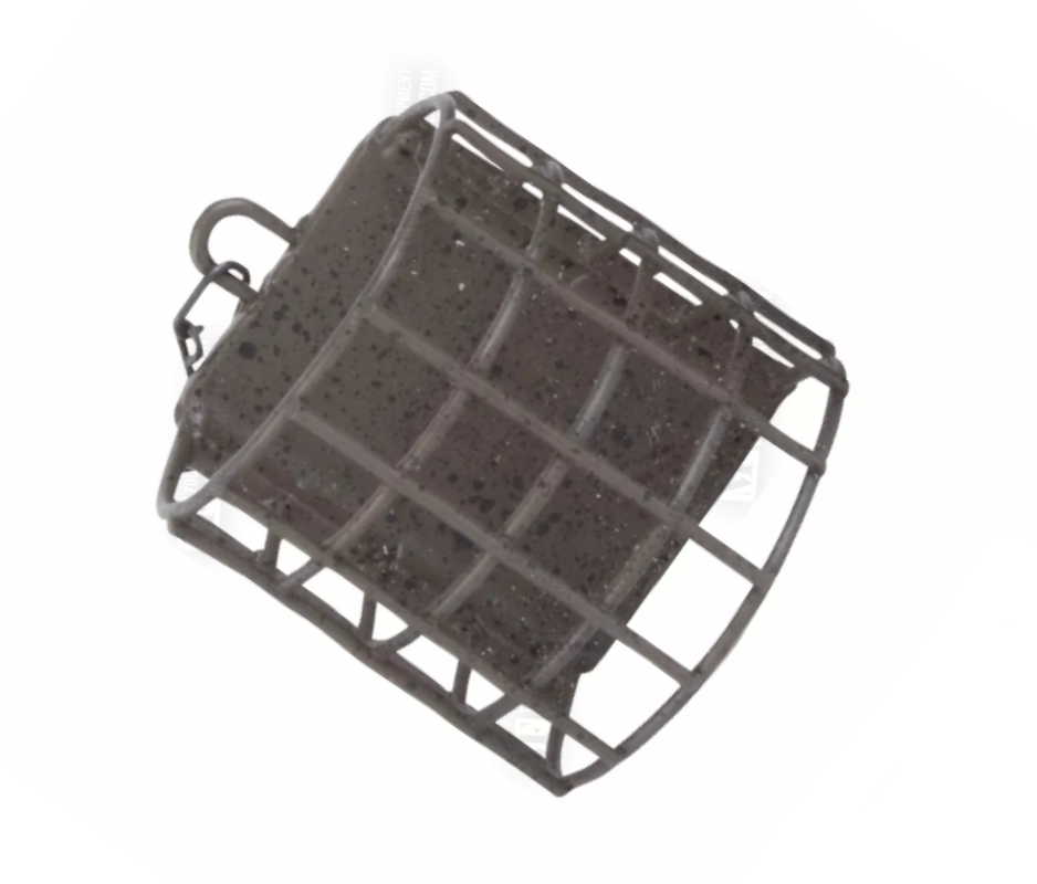 Wire Cage е модел перфорирана кошница, отворена от двата края, с полукръгло тяло, изработено от неръждаема стомана, третирана със специално защитно екологично прахово покритие, което не замърсява околната среда (нетоксично). Металното олово осигурява стабилност на кошницата върху дъното, а перфорациите подпомагат ефективното разпръскване на примамката във водата. Оловото е оборудвано с ухо за закрепване, чрез което можем бързо да прикачим кошницата към всяка щипка, вирбел и др.