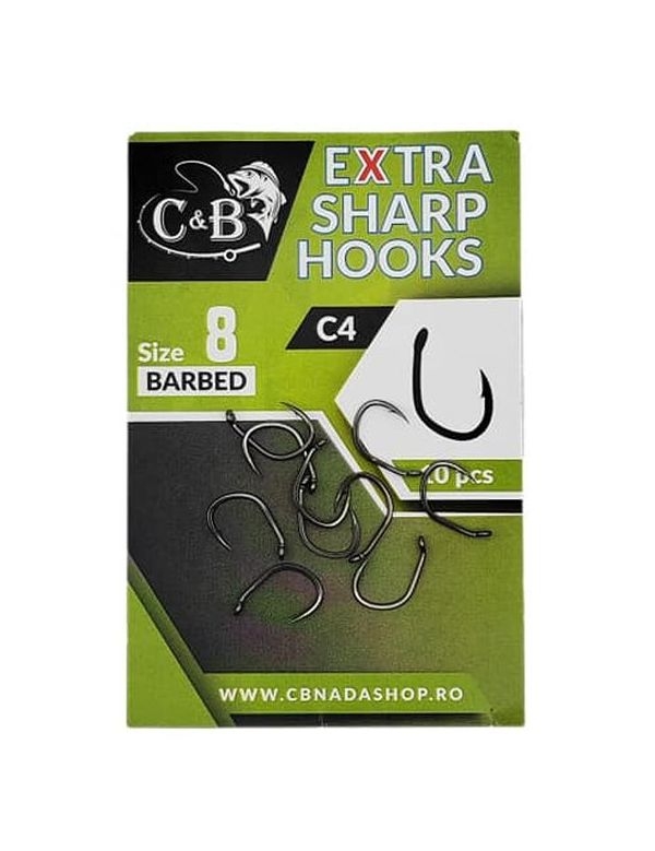 Куките C4 Extra Sharp са специално изработени от висококачествен кован стомана. Куките имат късо стебло, а ухото, насочено навътре, е разположено в продължение на стеблото. Отварянето улеснява бързото проникване в устата на рибата. Те са с технология за специално заточване на върха, а покритието гарантира дълготрайност и повишена устойчивост на корозия.