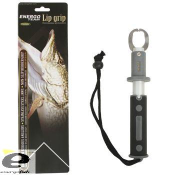 Лип грипът осигурява нежен начин за изваждане на хищнически риби от водата. Закрепете каишката за ръка над китката, след което хванете лип грипа за дръжката. Повдигнете клапата във вътрешността на устройството, за да захванете рибата за челюстта, осигурявайки бързо и сигурно закрепване. Лип грипът разполага с вграден въртящ се накрайник.