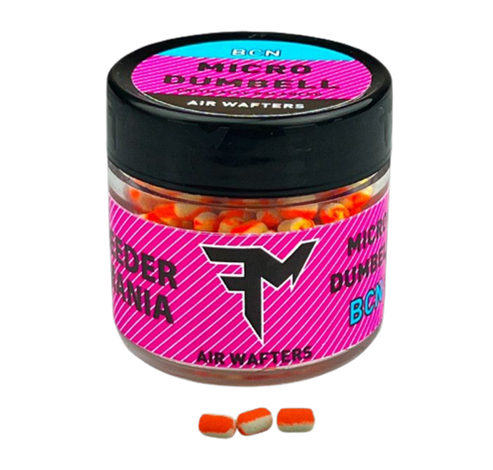 Micro Dumbell Air Wafters е критично балансирана стръв за кука с диаметър около 6мм-7мм, която няма да повдигне куката от дъното. Стръвта е много лесно забележима за рибите в зоната с прикормка, което може да доведе до повече улов. Може много лесно да се прикрепи на иглата за стръв или на косъмчето. Гамата продукти е налична в различни цветови и ароматни комбинации, идеални както за фидер риболов, така и за риболов на шаран. Базирайки се на многогодишен опит в риболова, сме подбрали премиум аромати за максимална ефективност.