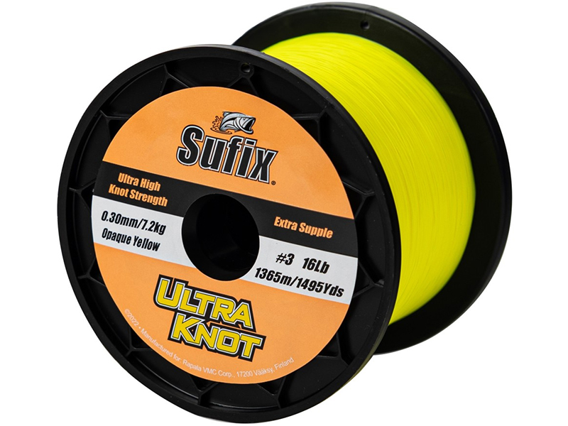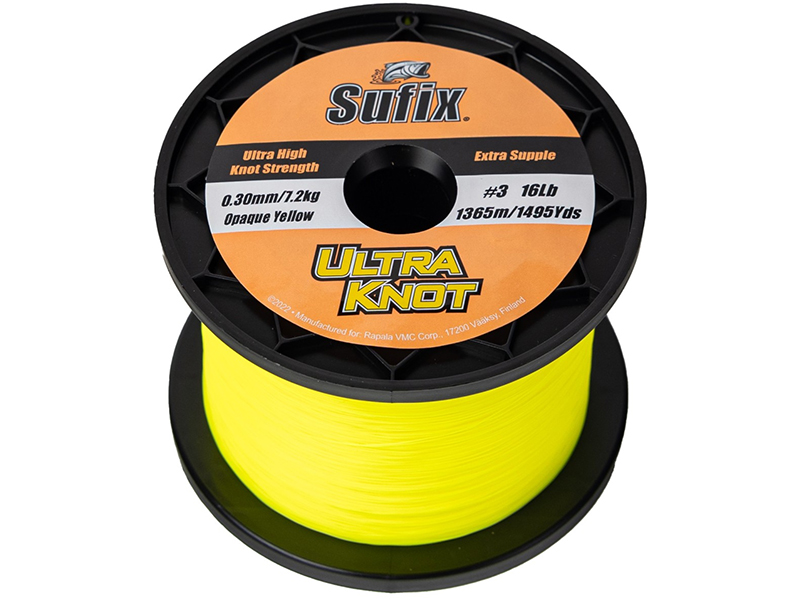 Кордa с всички основни характеристики, които търси един шаранджия. Sufix Ultra Knot, независимо от цветния вариант (неоново жълт, тъмнозелен или жълто/оранжев), е един от най-използваните монофиламенти в Европа. Много ниската цена, в комбинация с дължината на макарата, както и положителните отзиви от рибарите, допринесоха за утвърждаването му като топ продукт.