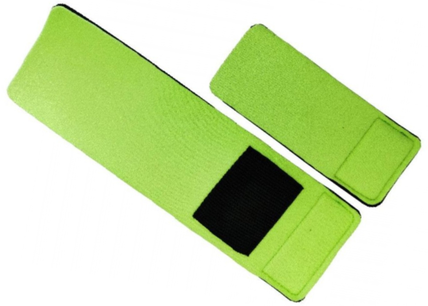 Комплект от две велкро ленти от неопрен в зелено, от серията Elegance Method (една по-малка и една по-голяма) за свързване на секциите на въдицата по време на транспорт. По-малката се използва за тънката/горна част на въдицата при транспортиране, докато по-голямата лента се използва в долната част, за дръжката.