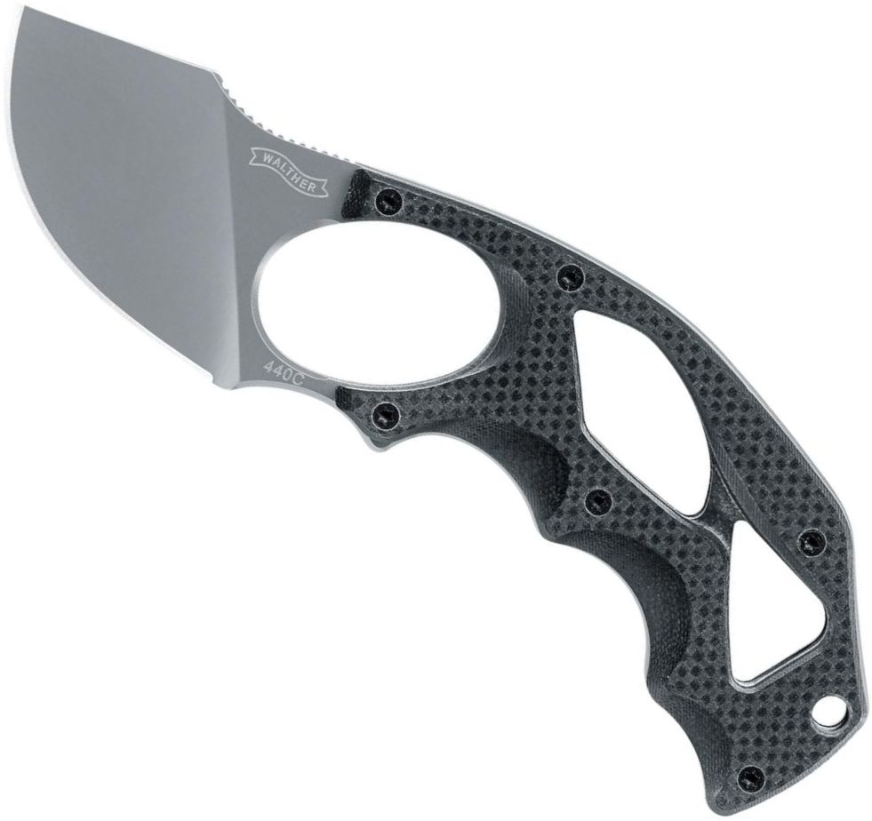 Ловен и кожилен нож, произвеждан от известната фирма Walther, с острие 6.5cm, изработено от неръждаема стомана 440C. Здравото острие тип "full-tang" (простира се по цялата дължина на дръжката) е гравирано с логото Walther, което удостоверява оригиналността и качеството на продукта. Дръжката е изработена от черен пластмасов материал. Тя има ергономична форма, специални канали за пръстите и осигурява отличен захват дори когато ръката ви е влажна.