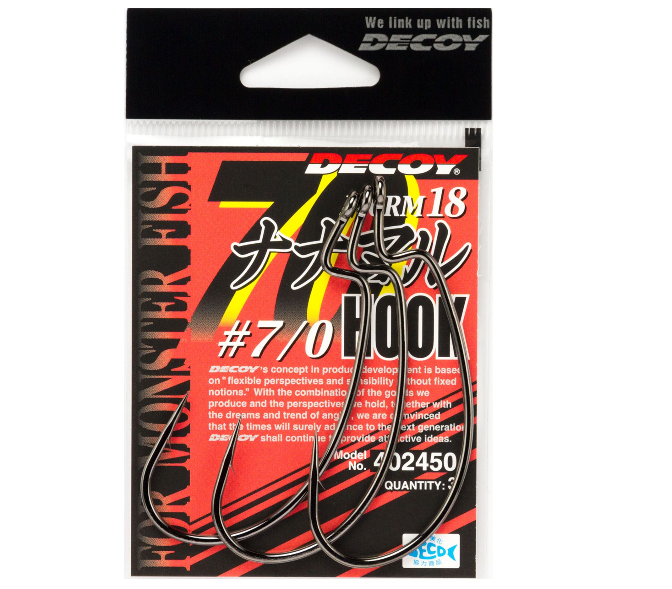 Със широко и прецизно ухо, Decoy Worm 18 осигурява изключителен контакт. Използването на този тип куки ни позволява да изследваме райони с закачки или растителност, тъй като жилото на куката се крие много добре в тялото на примамката. Благодарение на специалния дизайн, тя има по-нисък център на тежестта, което осигурява стабилна позиция. Куките са произведени от японска кована стомана, с черен никелиран завършек, а електрохимически загостреното жило им придава дълъг експлоатационен живот.