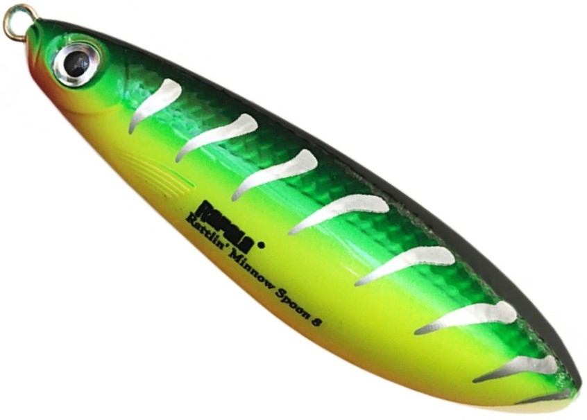 Лингурите Rapala Rattlin' Minnow Spoon представляват уникална конструкция, която комбинира силуета на минноу с действието на осцилираща лингура, като е най-добрият избор при риболов на щука и не само. Лингурита осцилираща е оборудвана с Internal Rattle Chamber, в която са разположени звънчета, издаващи звуци и вибрации, неустоими за хищниците. Чудесно острият кука VMC е синоним на здравина и качество, осигуряващи значителен процент на успешни улов.