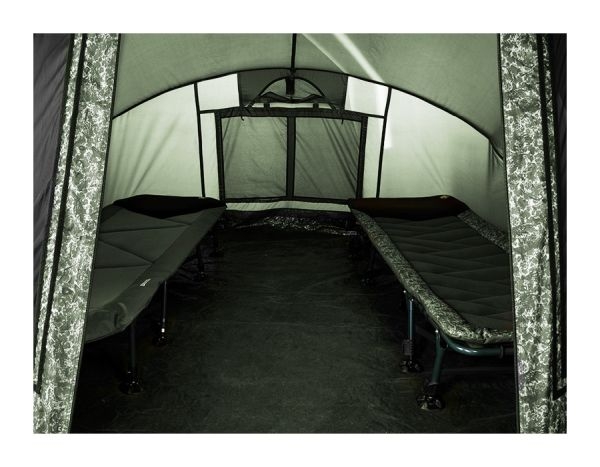 Поради размерите си палатката побира 2 легла, като остава и достатъчно пространство за движение, както и за чанти и други риболовни принадлежности, необходими за комфортен престой край вода. При необходимост вътрешното пространство може да побере дори 3 легла. Има и два елемента за закрепване на въдици, както и голяма козирка, която осигурява защита от слънце и дъжд. Вътре, на тавана, са поставени 2 кукички, на които например може да се окачи лампа.