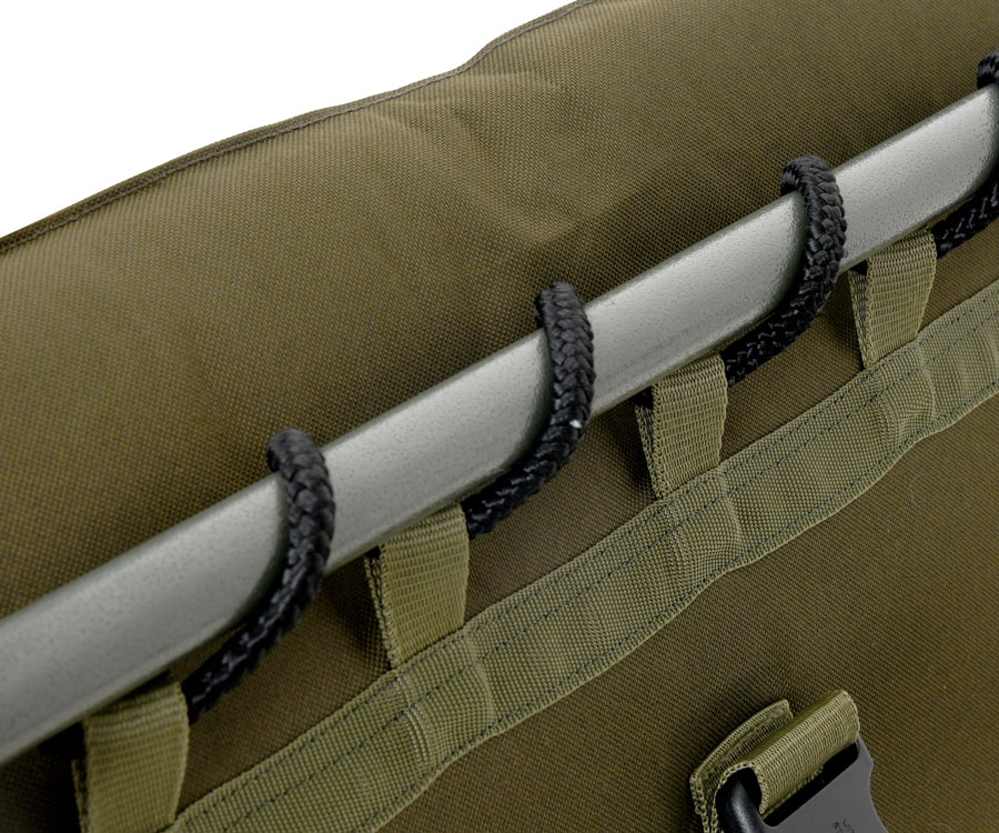 Покривният материал от полиестер 600D е изключително издръжлив, ефективно предпазвайки от влага и замърсявания, което удължава живота на леглото и го прави подходящо за всякакви метеорологични условия. Осемте телескопични крака са оборудвани със система за лесен монтаж, позволяваща бързо регулиране на неравен терен, а широките основи предотвратяват потъване в меката почва. Освен това, леглото Carp Pro Light Bed е практично: сгъва се бързо, лесно се транспортира и съхранява.