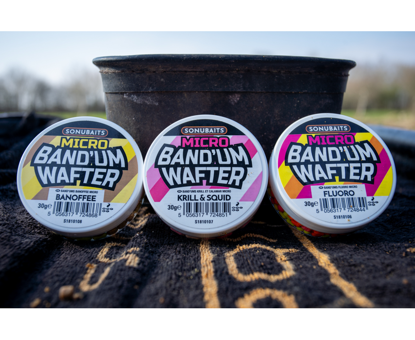 Sonubaits Micro Band'um Wafters са критично балансирани pop up примамки, изключително универсални, специално създадени за риболов с method фидер или за използване на силиконов пръстен (или на шип за стръв). Micro Band'um Wafters са разработени за онези ситуации, когато рибата идва в района с подхранка и консумира подаваната стръв, включително и тази, прикрепена към куката.