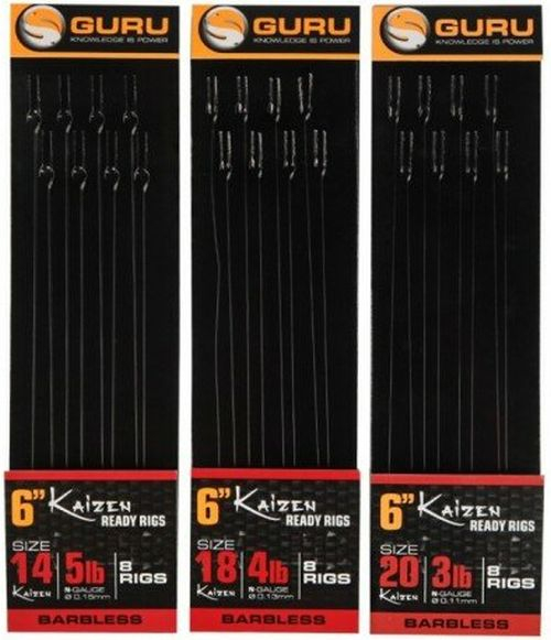 Подходящи за всички техники на стоящ риболов на средно големи шаранови, вързаните куки Guru Kaizen са перфектната комбинация от качествени материали, завършени с изключително здрав възел. Както използваният влакно, така и куките с специална форма и изключително остър връх, са удобен и достъпен вариант за риболов с повечето предимства на страната на риболовците.