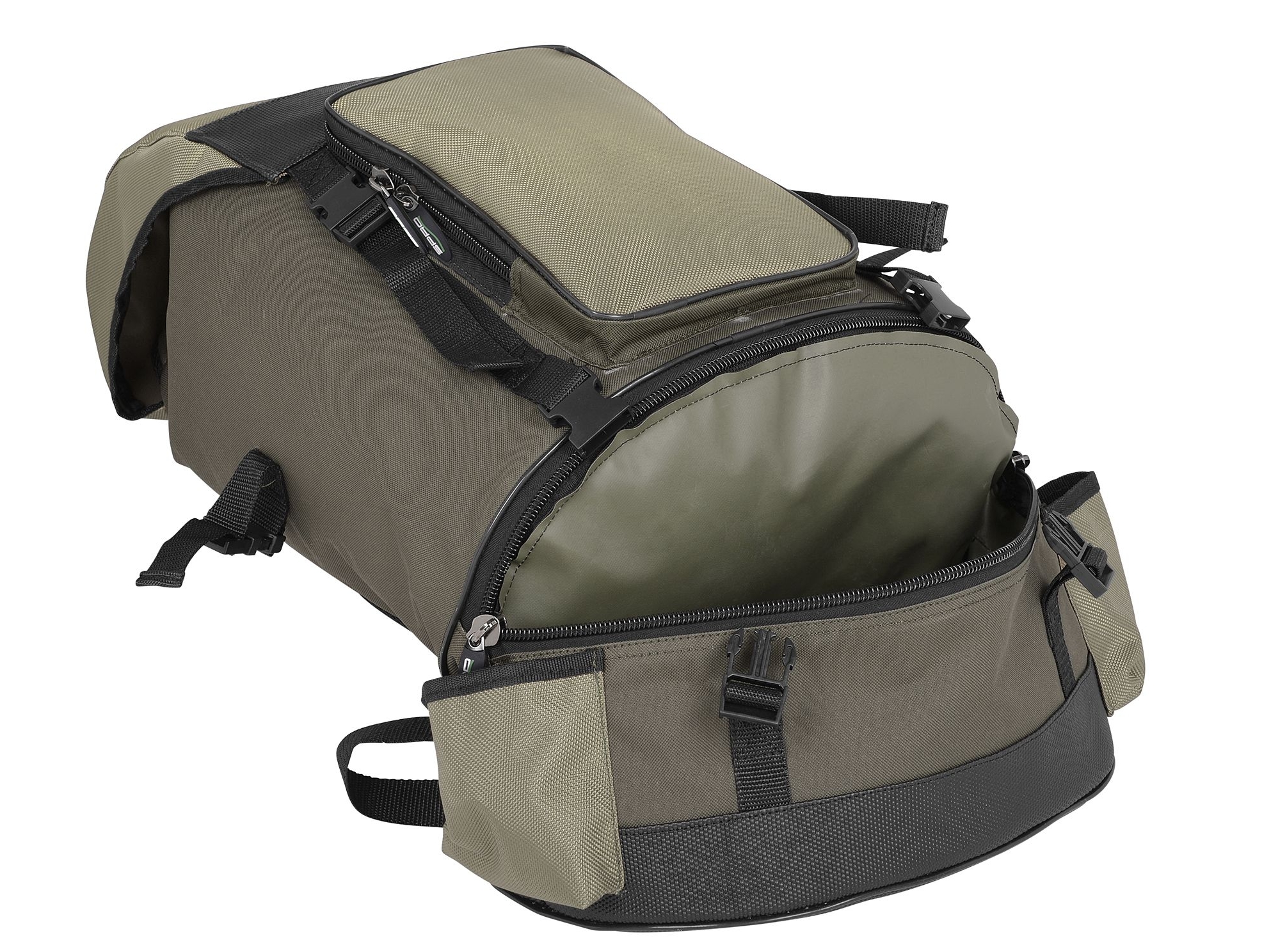 Комфортна и практична раница, вместителна, здрава, с множество отделения за съхранение на различни аксесоари. Разполага с пълноципове големи джобове за ефективен и удобен транспорт, особено необходими при риболов в движение. Достатъчно голяма раница за необходимото оборудване и аксесоари.