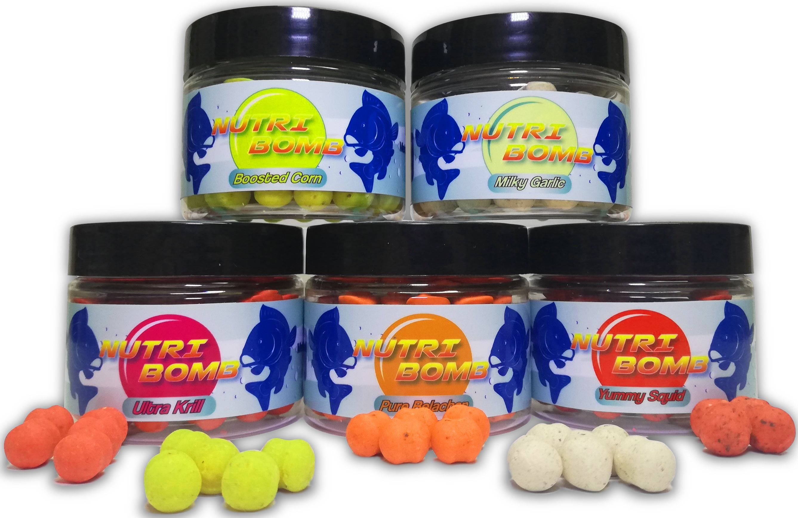 Nutri Bomb е предложението за идеалната потопяемата стръв, проектирана за риболов на специално обособени места, подходяща особено за метода метода фийдър. Тази гама стръв повишава настоящите стандарти, предоставяйки ефективни решения в всяка ситуация. Името Nutri Bomb описва продукта перфектно, тъй като представлява истински „хранителни бомби“, разпознати от рибите като важни източници на храна, които е невъзможно да бъдат игнорирани. Съдържанието на Nutri Bomb включва сложна смес от хранителни брашна и млечни протеини, които стимулират апетита. Течната част на тези разтворими стръвове е внимателно селектирана за всеки сорт, действуваща като истинска течна храна.