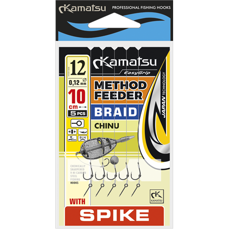 Kamatsu Method фидер Chinu са професионално завързани ригове, специално предназначени за риболов с method фидер. Дължината на рига е 10cm, изработен е от текстилна влакно, с остри куки Chinu с ухо и шип за стръв.