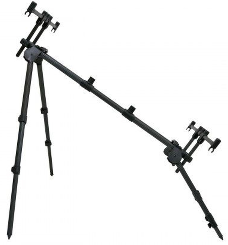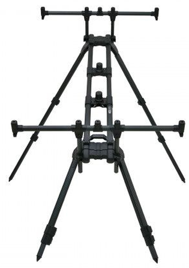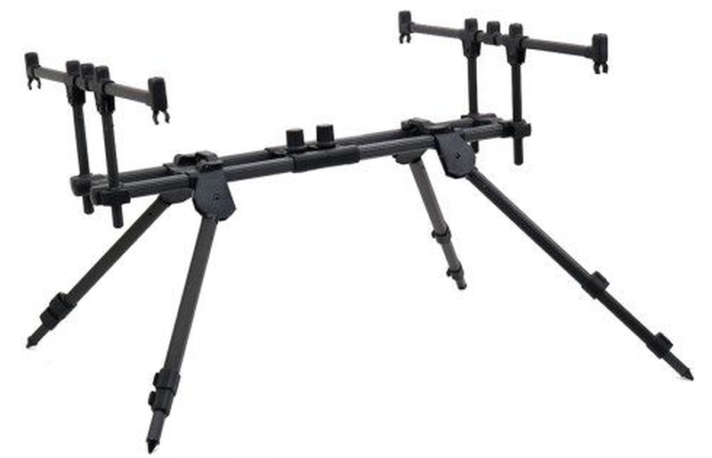 Carp Pro - Rod Pod 3-4 места е изтънчено съчетание от функционалност и модерен дизайн. Всички части са изработени от алуминий и имат впечатляващо матово черно покритие. Компактен е, много лесен за пренасяне и може да бъде сглобен много бързо. Разполага с 4 крака и е изключително стабилен, всички крака са телескопични и позволяват регулиране на наклона в широк диапазон, както и монтаж върху неравен терен. Остри върхове осигуряват надеждно фиксиране на краката върху различни повърхности. Дизайнът позволява използването на всички сигнализатори и стойки със стандартен резба. Доставя се с удобна чанта от здрав материал.
