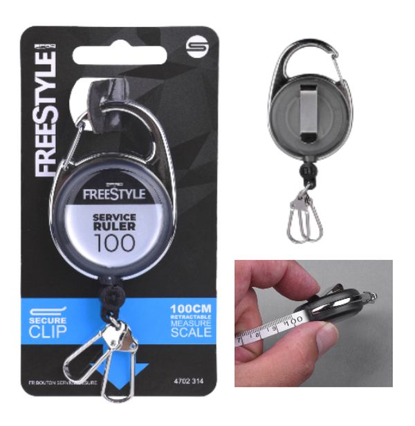 Много полезен аксесоар за рибарите, практикуващи Catch&Release, които искат да знаят точно размерите на улова си. Може да се прикрепи към екипировката или аксесоарите за риболов с помощта на карабинер. Системата за автоматично навиване може да се разгъне до 100cm по време на ползване.