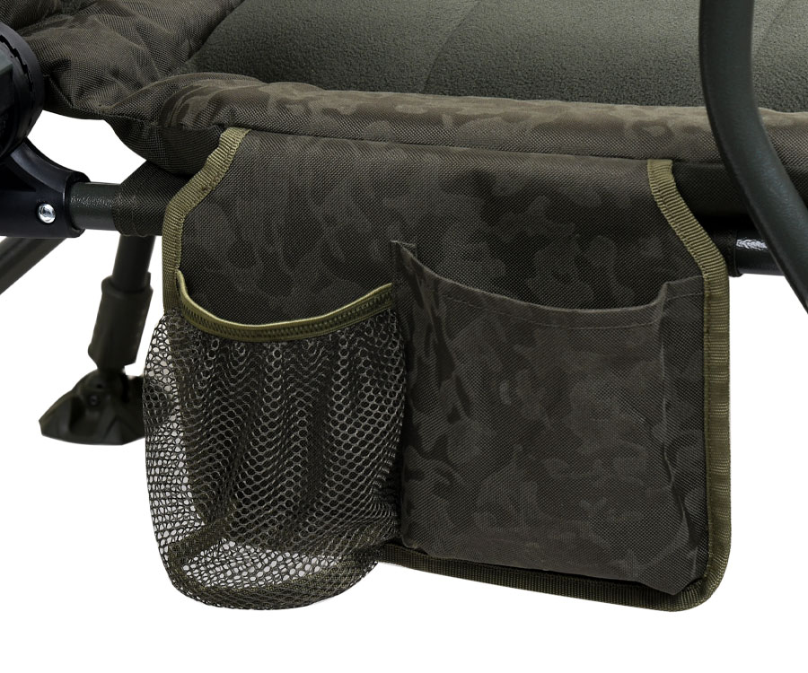 Столът Carp Pro Diamond Bliss, със здрава рамка от стомана и алуминий, поддържа тежест до 150 кг, осигурявайки повишена здравина и издръжливост. Обшивката му в камуфлаж Carp Pro е изработена от водоустойчив материал 650D, гарантиращ комфорт и защита от атмосферни влияния. Оборудван с подвижен и регулируем по височина възглавничка за глава и пяна с памет в подглавника, седалката и облегалката, столът осигурява естествена позиция на тялото, предлагайки релаксиращо изживяване при риболов.