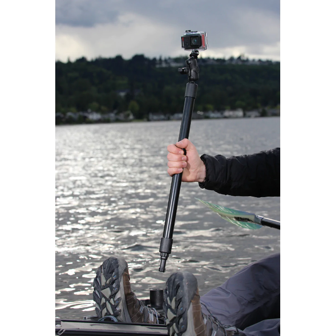 Използваните компоненти позволяват регулиране на стойката под почти всякакъв ъгъл и предлагат възможност за сгъване и прибиране, когато не се използва. Адаптерът за екшън камери е съвместим с всяка камера с двойно закрепване (GoPro).