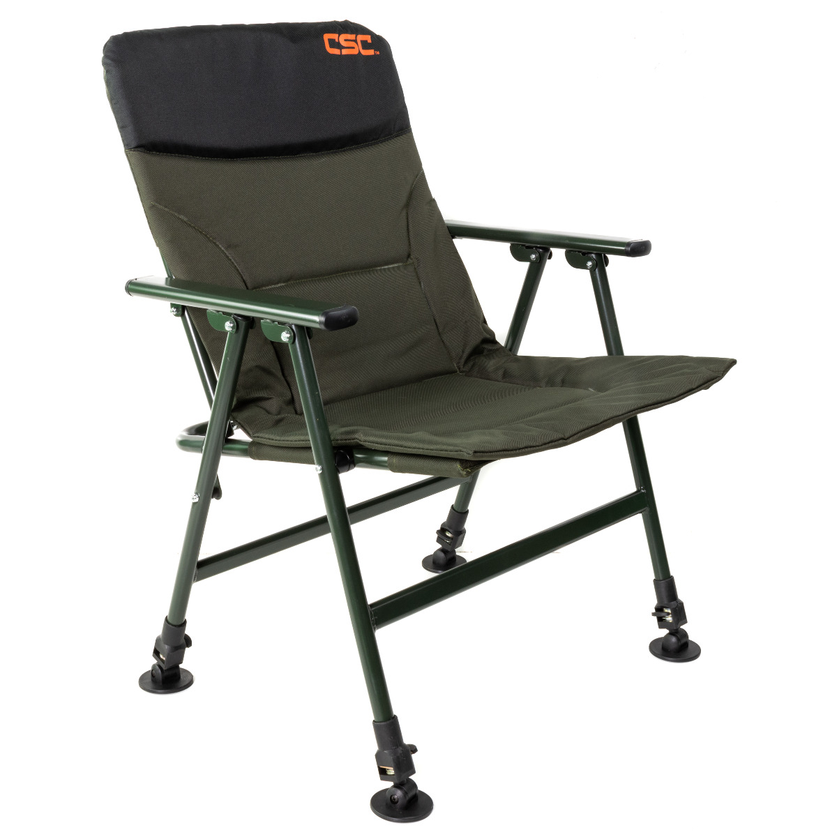 Carp Spirit Level Chair е сгъваем стол за риболов, оборудван с подлакътници, конструиран върху лек и здрав корпус от прахово боядисана стомана със защита против корозия. Гърбът и седалката са изработени от износоустойчив материал Cordura. Възглавницата на нивото на главата (където се подпря гръбначният врат) е облицована с приятен материал, който гарантира повишен комфорт по време на ползване.