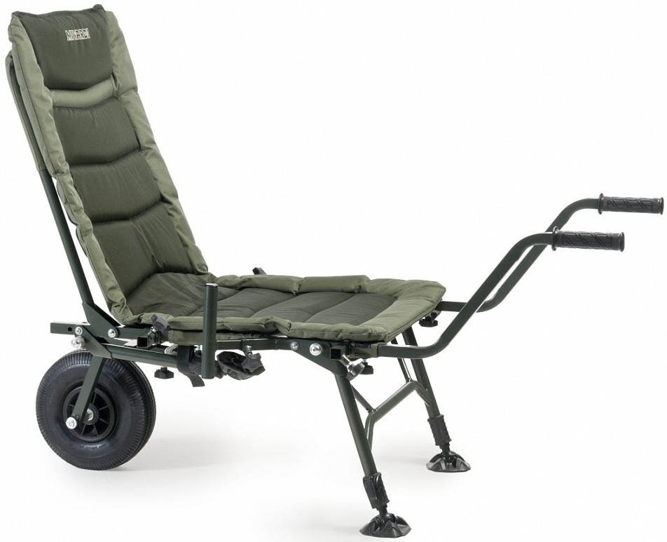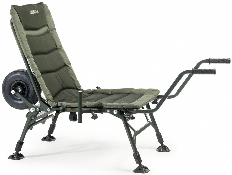 Четирите крака са телескопични и оборудвани с "extra large" подложки, за да не потъват в много кал. За няколко секунди столът може да се превърне в тролей (количка) с една надуваема колело и две здрави и удобни дръжки. Столът се доставя с покривало, което може да покрие и предпази седалката, както и с адаптер за аксесоари. Максималното натоварване на стола (тролея) е 150 кг.
