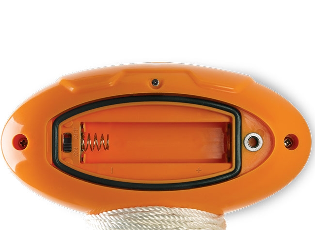 Светещият маркер Rapala се активира при контакт с вода. Двете LED лампи осигуряват работа до 60 часа с 2 батерии тип AA*. Вътре има бутон "Включване/Изключване" за работа през деня, което позволява удължаване на времето за ползване с един комплект батерии. Съдържа 15м корда и гъвкава тежест от 170 грама.