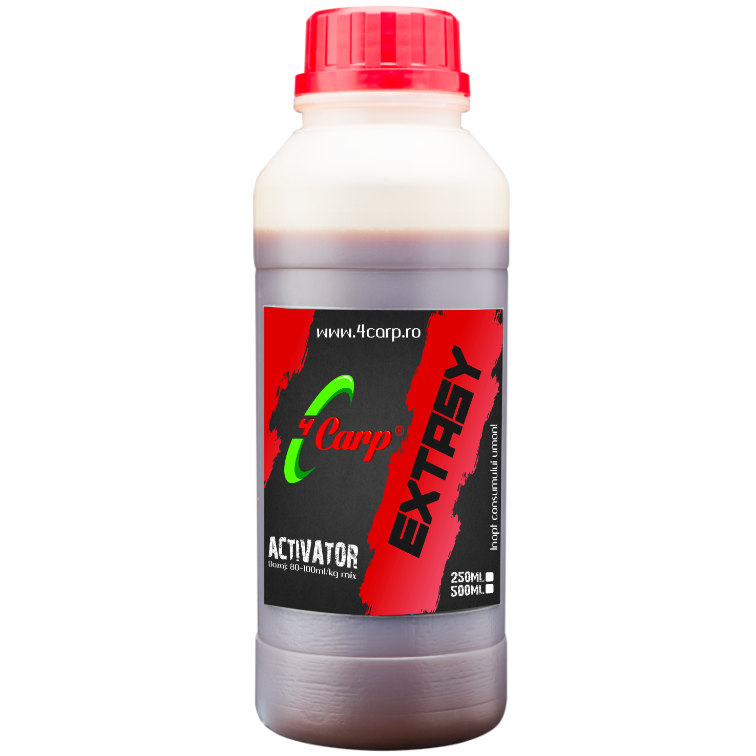 Основната роля на активаторите е да усилят хранителния сигнал, предаван в зоната с примамка, и да привлекат рибата. Активаторите, произведени от фирма 4Carp, са специално разработени за всяка гама микс (според формулата, използвана от 4CARP в производствения процес на бойлите). Използвайки препоръчания активатор за всяка гама, постигате перфектен баланс между микса и течната част, гарантиращ утвърдени рецепти. Включени са всички необходими хранителни течности в оптимални дози, включително аромата. Препоръчителна дозировка: 80-100 ml/kg микс.