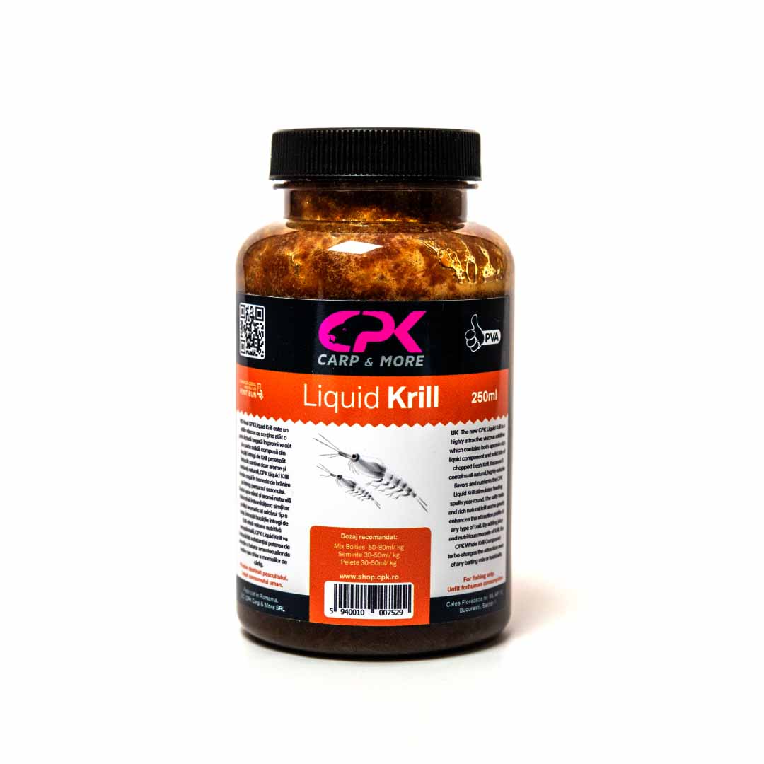 Новата гама течности от CPK съдържа всичко необходимо за печелившо предимство. Течността е създадена да разпръсква аромата и привличането из цялата водна колона. Проектирана да осигури интензивен аромат и превъзходно привличане, тя е почти незаменима за успеха на риболовното излет. Може да се използва по различни начини – както като добавка директно върху method, така и върху пелетите. Може да се прилага върху spod сместа, както и в PVA торбички или пликчета за допълнително привличане и ясно предимство спрямо другите, подпомагайки улова на голямо количество риба. Препоръчва се за всички видове мирна риба, особено за шаран, лин, платика и бабушка.