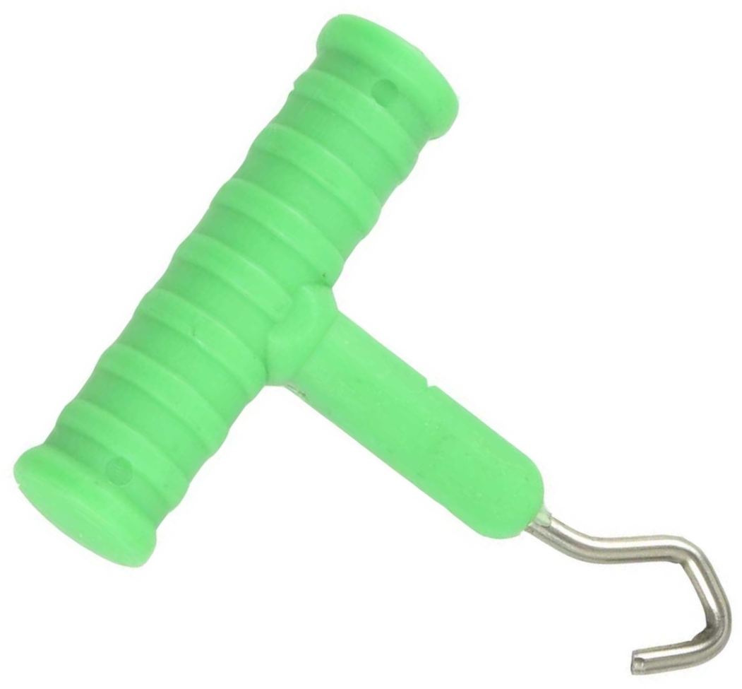 Knoter е устройство във формата на буквата "T", снабдено с кука от стомана, незаменимо особено за риболовците на шаран, предназначено за ефективно затягане на възлите. Може да се използва и за проверка и фиксиране на щипки, въртящи се елементи и други върху монтажи или ригове. Разполага с ергономичен дизайн, дръжката осигурява стабилен захват при затягането на възлите върху куки или въртящи се елементи. Изработено е в зелено.