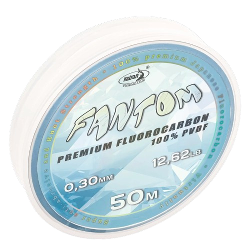 Fantom fluorocarbon 100% е флагманското влакно на производителя Katran. Изработено е от кополимери, използвайки само 100% премиум флуорокарбон, произведено в Япония. Поради по-голямата си плътност в сравнение с обикновените влакна, то потъва 4 пъти по-бързо от обикновените монофилни влакна. Изключително твърдо, устойчиво на абразия (миди, ракообразни, камъни, подводна растителност). Благодарение на състава си от премиум флуорокарбон, непигментираните кополимери правят коефициента на пречупване близък до този на светлината, което го прави практически невидимо във водата.