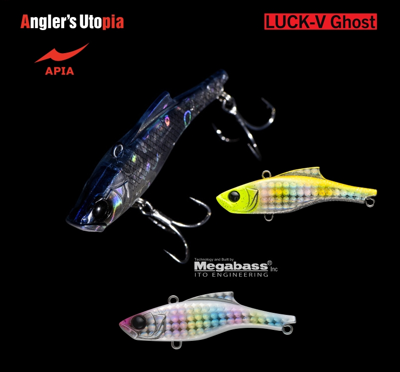 Apia Luck-V Ghost е липлесс воблер, който излъчва ултрафини вибрации, подходящ за лов на пасивни или капризни хищници. Формата на тялото е променена в задната част, за да реагира бързо на действията на риболовеца. Приятното усещане на плавно съпротивление намалява умората, причинена от вибрациите при прибиране. Пръстенът в опашката е проектиран да предотвратява повреда, което го прави идеален за риболов край брега или в зони с препятствия.